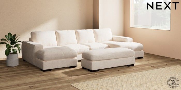 7.2.6 Buy Houghton Deep Relaxed Sit Large - U Shaped Double Chaise with Footstool Boucle Chenille Oyster Large Square Angle - Dark from the Next UK online shop Click here to use our accessible website