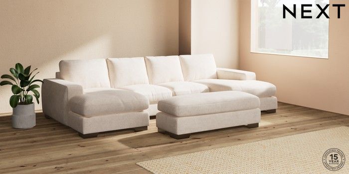 7.2.6 Buy Houghton Deep Relaxed Sit Large - U Shaped Double Chaise with Footstool Boucle Chenille Oyster Large Square Angle - Gunmetal from the Next UK online shop Click here to use our accessible website