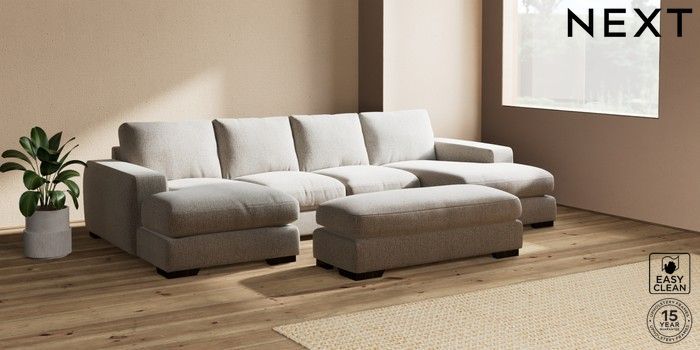 7.2.6 Buy Houghton Deep Relaxed Sit Large - U Shaped Double Chaise with Footstool Chunky Boucle Easy Clean Dove Large Square Angle - Dark from the Next UK online shop Click here to use our accessible website