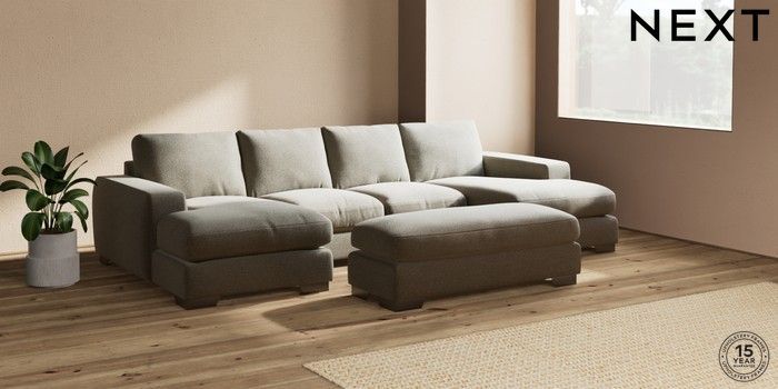 7.2.6 Buy Houghton Deep Relaxed Sit Large - U Shaped Double Chaise with Footstool Chunky Marl Light Olive Green Large Square Angle - Gunmetal from the Next UK online shop Click here to use our accessible website