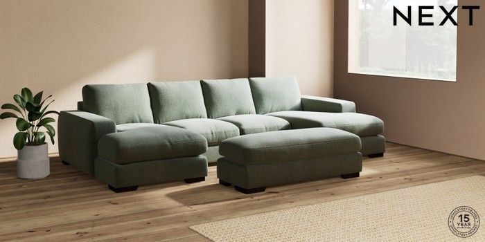 7.2.6 Buy Houghton Deep Relaxed Sit Large - U Shaped Double Chaise with Footstool Chunky Texture Mid Forest Green Large Square Angle - Dark from the Next UK online shop Click here to use our accessible website