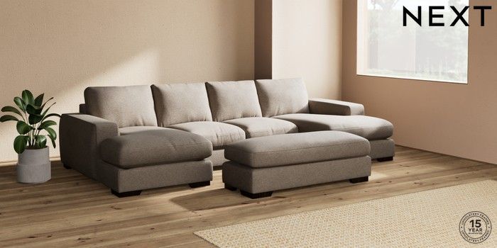 7.2.6 Buy Houghton Deep Relaxed Sit Large - U Shaped Double Chaise with Footstool Chunky Weave Dark Natural Large Square Angle - Dark from the Next UK online shop Click here to use our accessible website