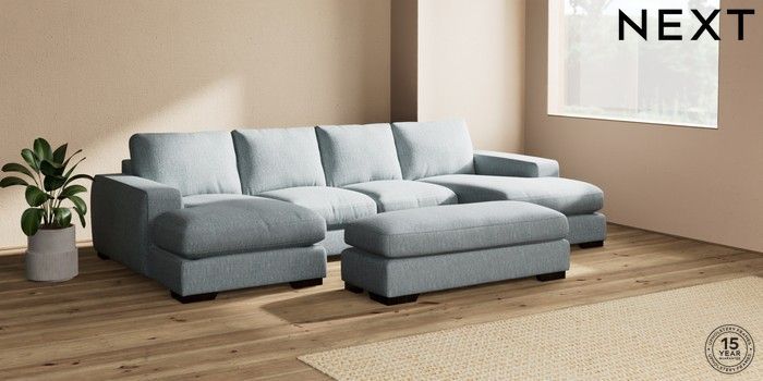 7.2.6 Buy Houghton Deep Relaxed Sit Large - U Shaped Double Chaise with Footstool Chunky Weave Mid Blue Large Square Angle - Dark from the Next UK online shop Click here to use our accessible website