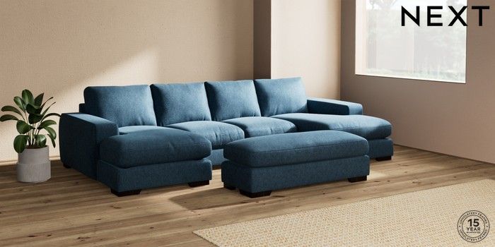 7.2.6 Buy Houghton Deep Relaxed Sit Large - U Shaped Double Chaise with Footstool Cotswold Chenille Dark Blue Large Square Angle - Dark from the Next UK online shop Click here to use our accessible website