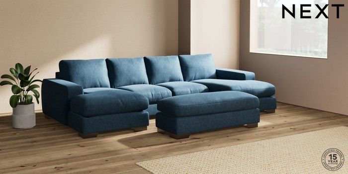 7.2.6 Buy Houghton Deep Relaxed Sit Large - U Shaped Double Chaise with Footstool Cotswold Chenille Dark Blue Large Square Angle - Gunmetal from the Next UK online shop Click here to use our accessible website