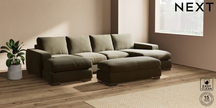 7.2.6 Buy Houghton Deep Relaxed Sit Large - U Shaped Double Chaise with Footstool Fine Chenille Easy Clean Dark Moss Green Large Square Angle - Gunmetal from the Next UK online shop Click here to use our accessible website