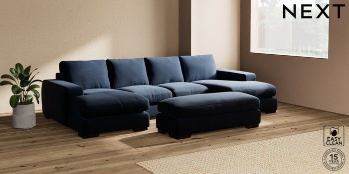 7.2.6 Buy Houghton Deep Relaxed Sit Large - U Shaped Double Chaise with Footstool Fine Chenille Easy Clean Dark Navy Blue Large Square Angle - Dark from the Next UK online shop Click here to use our accessible website