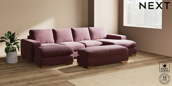 7.2.6 Buy Houghton Deep Relaxed Sit Large - U Shaped Double Chaise with Footstool Fine Chenille Easy Clean Mid Mulberry Purple Large Square Angle - Brushed Brass from the Next UK online shop Click here to use our accessible website