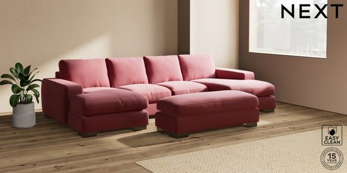 7.2.6 Buy Houghton Deep Relaxed Sit Large - U Shaped Double Chaise with Footstool Fine Chenille Easy Clean Mid Pink Large Square Angle - Gunmetal from the Next UK online shop Click here to use our accessible website