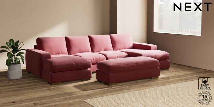 7.2.6 Buy Houghton Deep Relaxed Sit Large - U Shaped Double Chaise with Footstool Fine Chenille Easy Clean Mid Pink Large Square Angle - Mid from the Next UK online shop Click here to use our accessible website