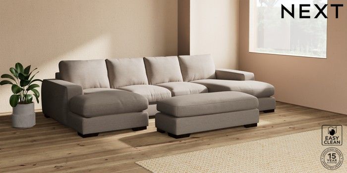 7.2.6 Buy Houghton Deep Relaxed Sit Large - U Shaped Double Chaise with Footstool Fine Chenille Easy Clean Mid Taupe Brown Large Square Angle - Dark from the Next UK online shop Click here to use our accessible website
