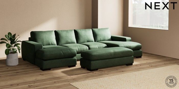 7.2.6 Buy Houghton Deep Relaxed Sit Large - U Shaped Double Chaise with Footstool Luxe Chenille Dark Green Large Square Angle - Dark from the Next UK online shop Click here to use our accessible website