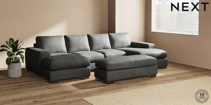 7.2.6 Buy Houghton Deep Relaxed Sit Large - U Shaped Double Chaise with Footstool Plush Chenille Dark Grey Large Square Angle - Gunmetal from the Next UK online shop Click here to use our accessible website