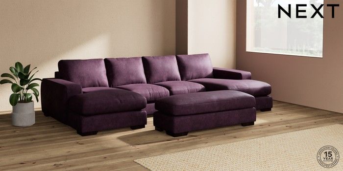 7.2.6 Buy Houghton Deep Relaxed Sit Large - U Shaped Double Chaise with Footstool Plush Chenille Dark Plum Purple Large Square Angle - Dark from the Next UK online shop Click here to use our accessible website
