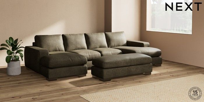 7.2.6 Buy Houghton Deep Relaxed Sit Large - U Shaped Double Chaise with Footstool Plush Chenille Moss Green Large Square Angle - Gunmetal from the Next UK online shop Click here to use our accessible website