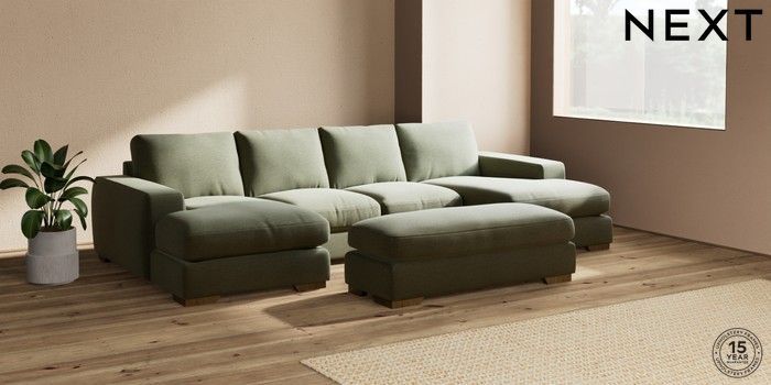7.2.6 Buy Houghton Deep Relaxed Sit Large - U Shaped Double Chaise with Footstool Ripple Chenille Mid Moss Green Large Square Angle - Mid from the Next UK online shop Click here to use our accessible website