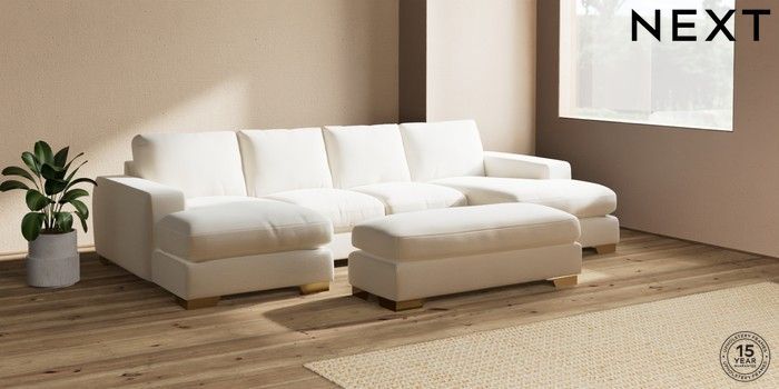 7.2.6 Buy Houghton Deep Relaxed Sit Large - U Shaped Double Chaise with Footstool Ripple Chenille Oyster Large Square Angle - Brushed Brass from the Next UK online shop Click here to use our accessible website