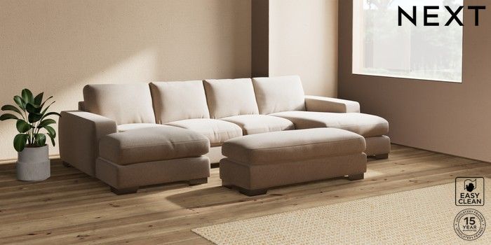 7.2.6 Buy Houghton Deep Relaxed Sit Large - U Shaped Double Chaise with Footstool Tweedy Blend Easy Clean Light Dove Natural Large Square Angle - Gunmetal from the Next UK online shop Click here to use our accessible website