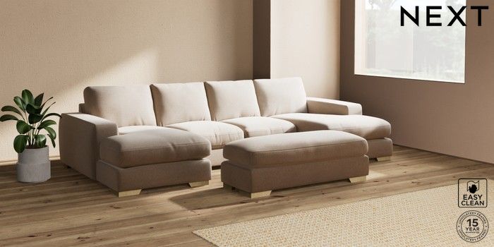 7.2.6 Buy Houghton Deep Relaxed Sit Large - U Shaped Double Chaise with Footstool Tweedy Blend Easy Clean Light Dove Natural Large Square Angle - Light from the Next UK online shop Click here to use our accessible website