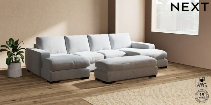 7.2.6 Buy Houghton Deep Relaxed Sit Large - U Shaped Double Chaise with Footstool Tweedy Blend Easy Clean Light Silver Grey Large Square Angle - Dark from the Next UK online shop Click here to use our accessible website