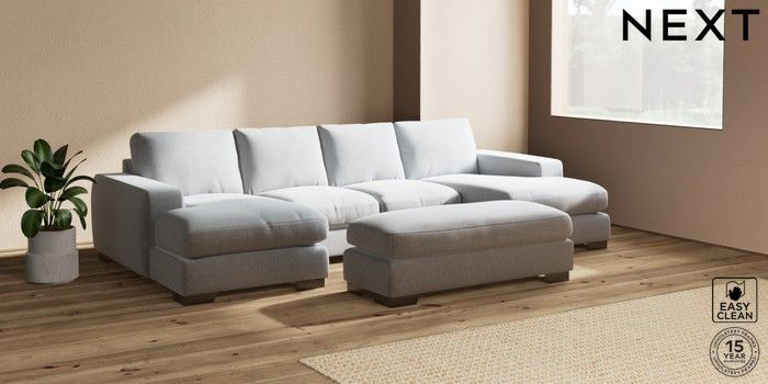 7.2.6 Buy Houghton Deep Relaxed Sit Large - U Shaped Double Chaise with Footstool Tweedy Blend Easy Clean Light Silver Grey Large Square Angle - Gunmetal from the Next UK online shop Click here to use our accessible website