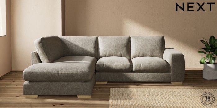 7.0.3 Buy Houghton Deep Relaxed Sit Medium Corner Chaise - Left Hand Cotswold Chenille Mid Mink Brown Large Square Angle - Light from the Next UK online shop Click here to use our accessible website