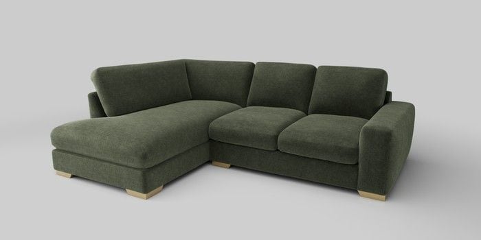 6.12.1 Buy Houghton Deep Relaxed Sit Medium Corner Chaise - Left Hand Luxe Chenille Mid Green Large Square Angle - Brushed Brass from the Next UK online shop Click here to use our accessible website