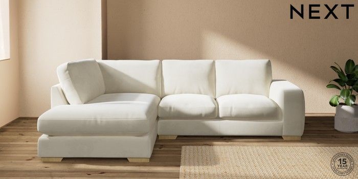 7.0.3 Buy Houghton Deep Relaxed Sit Medium Corner Chaise - Left Hand Luxe Chenille Oyster Large Square Angle - Light from the Next UK online shop Click here to use our accessible website