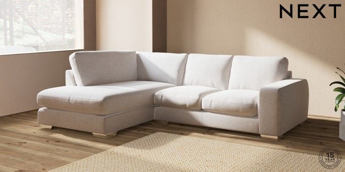 7.2.6 Buy Houghton Deep Relaxed Sit Medium Corner Chaise - Left Hand Multi Weave Oyster Large Square Angle - Chrome Metal from the Next UK online shop Click here to use our accessible website