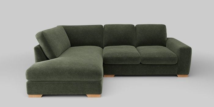 6.12.1 Buy Houghton Deep Relaxed Sit Medium Corner Chaise - Left Hand Luxe Chenille Mid Green Large Square Angle - Light from the Next UK online shop Click here to use our accessible website