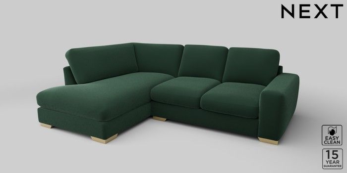 6.12.1 Buy Houghton Deep Relaxed Sit Medium Corner Chaise - Left Hand Plush Velvet Easy Clean Bottle Green Large Square Angle - Brushed Brass from the Next UK online shop Click here to use our accessible website