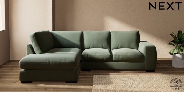 6.12.13 Buy Houghton Deep Relaxed Sit Medium Corner Chaise - Left Hand Relaxed Linen Look Dark Green Large Square Angle - Dark from the Next UK online shop Click here to use our accessible website