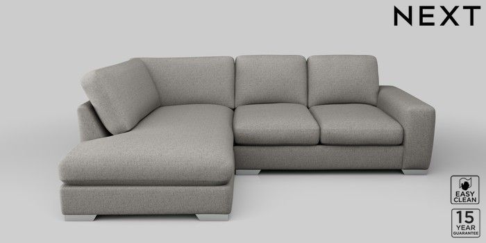 6.12.1 Buy Houghton Deep Relaxed Sit Medium Corner Chaise - Left Hand Woven Chenille Easy Clean Light Grey Large Square Angle - Chrome Metal from the Next UK online shop Click here to use our accessible website