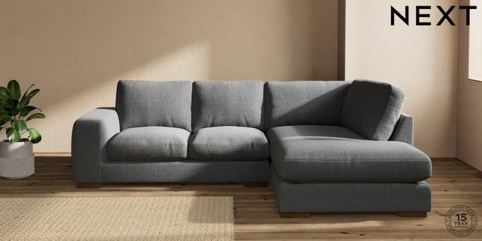 6.12.13 Buy Houghton Deep Relaxed Sit Medium Corner Chaise - Right Hand Chunky Texture Dark Grey Large Square Angle - Mid from the Next UK online shop Click here to use our accessible website