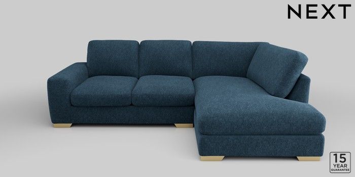 6.12.1 Buy Houghton Deep Relaxed Sit Medium Corner Chaise - Right Hand Cotswold Chenille Dark Blue Large Square Angle - Brushed Brass from the Next UK online shop Click here to use our accessible website