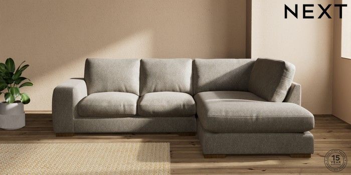7.0.3 Buy Houghton Deep Relaxed Sit Medium Corner Chaise - Right Hand Cotswold Chenille Mid Mink Brown Large Square Angle - Mid from the Next UK online shop Click here to use our accessible website