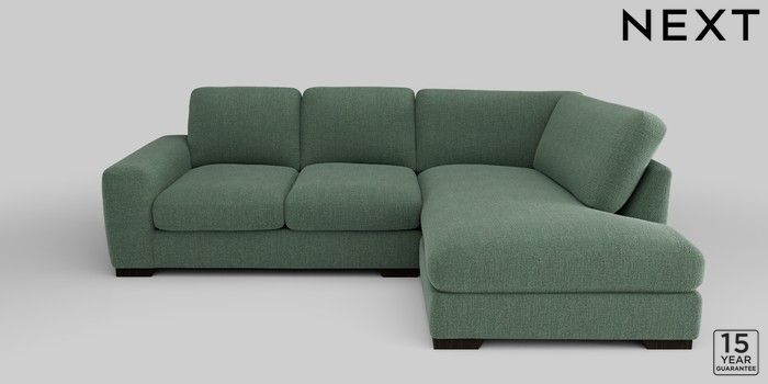 6.12.1 Buy Houghton Deep Relaxed Sit Medium Corner Chaise - Right Hand Chunky Texture Mid Forest Green Large Square Angle - Dark from the Next UK online shop Click here to use our accessible website