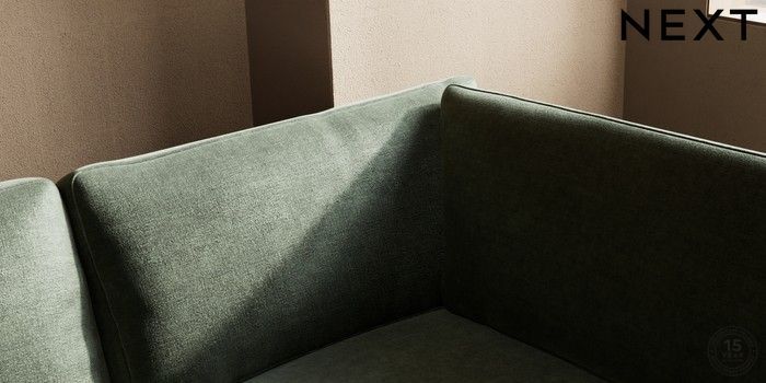 7.0.3 Buy Houghton Deep Relaxed Sit Medium Corner Chaise - Right Hand Luxe Chenille Mid Green Large Square Angle - Chrome Metal from the Next UK online shop Click here to use our accessible website