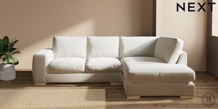 6.12.13 Buy Houghton Deep Relaxed Sit Medium Corner Chaise - Right Hand Relaxed Linen Look Oyster Large Square Angle - Light from the Next UK online shop Click here to use our accessible website