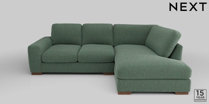 6.12.1 Buy Houghton Deep Relaxed Sit Medium Corner Chaise - Right Hand Chunky Texture Mid Forest Green Large Square Angle - Mid from the Next UK online shop Click here to use our accessible website