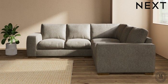 7.0.3 Buy Houghton Deep Relaxed Sit Medium Corner Sofa - Universal Cotswold Chenille Mid Mink Brown Large Square Angle - Mid from the Next UK online shop Click here to use our accessible website
