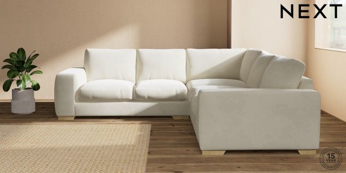 7.0.3 Buy Houghton Deep Relaxed Sit Medium Corner Sofa - Universal Luxe Chenille Oyster Large Square Angle - Light from the Next UK online shop Click here to use our accessible website