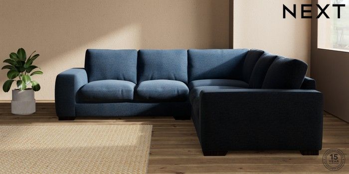 7.0.3 Buy Houghton Deep Relaxed Sit Medium Corner Sofa - Universal Ripple Chenille Dark Blue Large Square Angle - Dark from the Next UK online shop Click here to use our accessible website