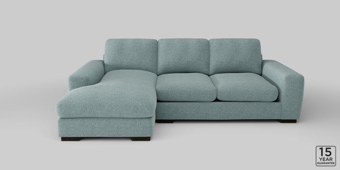 6.12.1 Buy Houghton Deep Relaxed Sit Medium Sofa Chaise - Left Hand Chunky Chenille Light Teal Green Large Square Angle - Dark from the Next UK online shop Click here to use our accessible website
