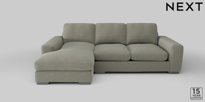 6.12.1 Buy Houghton Deep Relaxed Sit Medium Sofa Chaise - Left Hand Chunky Marl Light Olive Green Large Square Angle - Gunmetal from the Next UK online shop Click here to use our accessible website