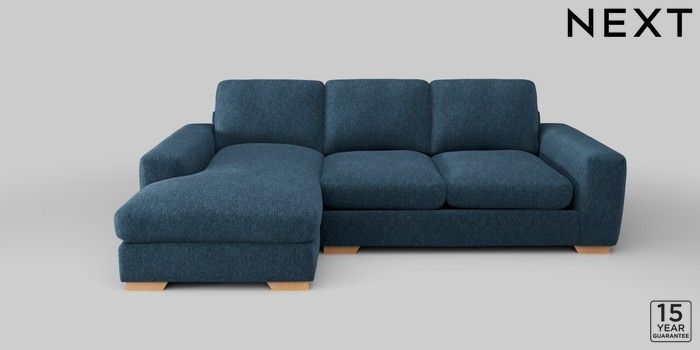 6.12.1 Buy Houghton Deep Relaxed Sit Medium Sofa Chaise - Left Hand Cotswold Chenille Dark Blue Large Square Angle - Light from the Next UK online shop Click here to use our accessible website