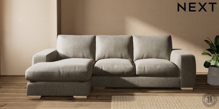 7.0.3 Buy Houghton Deep Relaxed Sit Medium Sofa Chaise - Left Hand Cotswold Chenille Mid Mink Brown Large Square Angle - Chrome Metal from the Next UK online shop Click here to use our accessible website