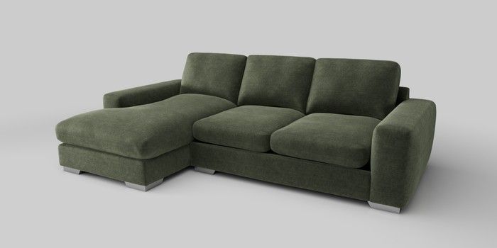 6.12.1 Buy Houghton Deep Relaxed Sit Medium Sofa Chaise - Left Hand Luxe Chenille Mid Green Large Square Angle - Chrome Metal from the Next UK online shop Click here to use our accessible website