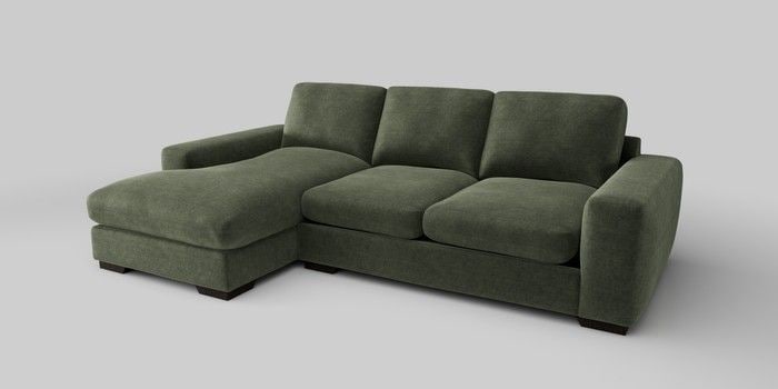 6.12.1 Buy Houghton Deep Relaxed Sit Medium Sofa Chaise - Left Hand Luxe Chenille Mid Green Large Square Angle - Dark from the Next UK online shop Click here to use our accessible website