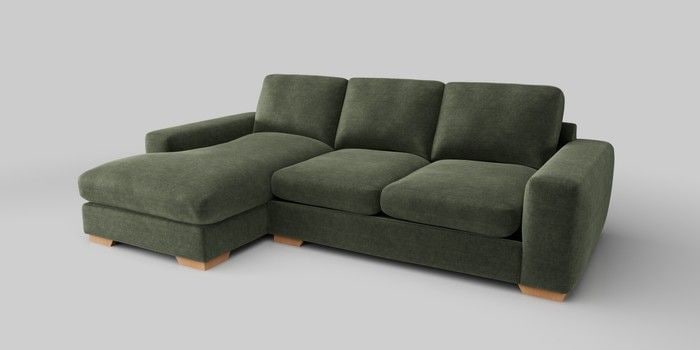 6.12.1 Buy Houghton Deep Relaxed Sit Medium Sofa Chaise - Left Hand Luxe Chenille Mid Green Large Square Angle - Light from the Next UK online shop Click here to use our accessible website